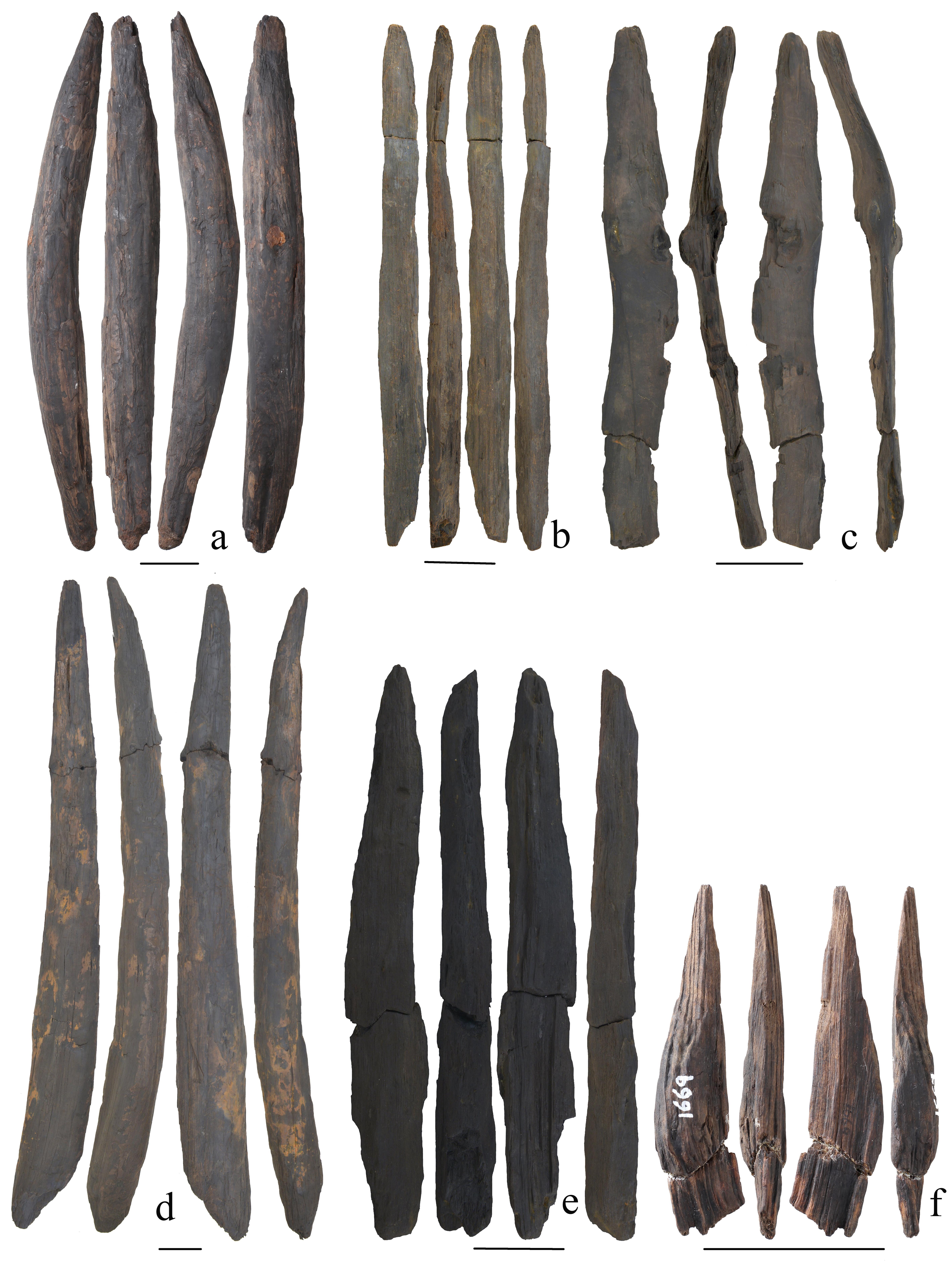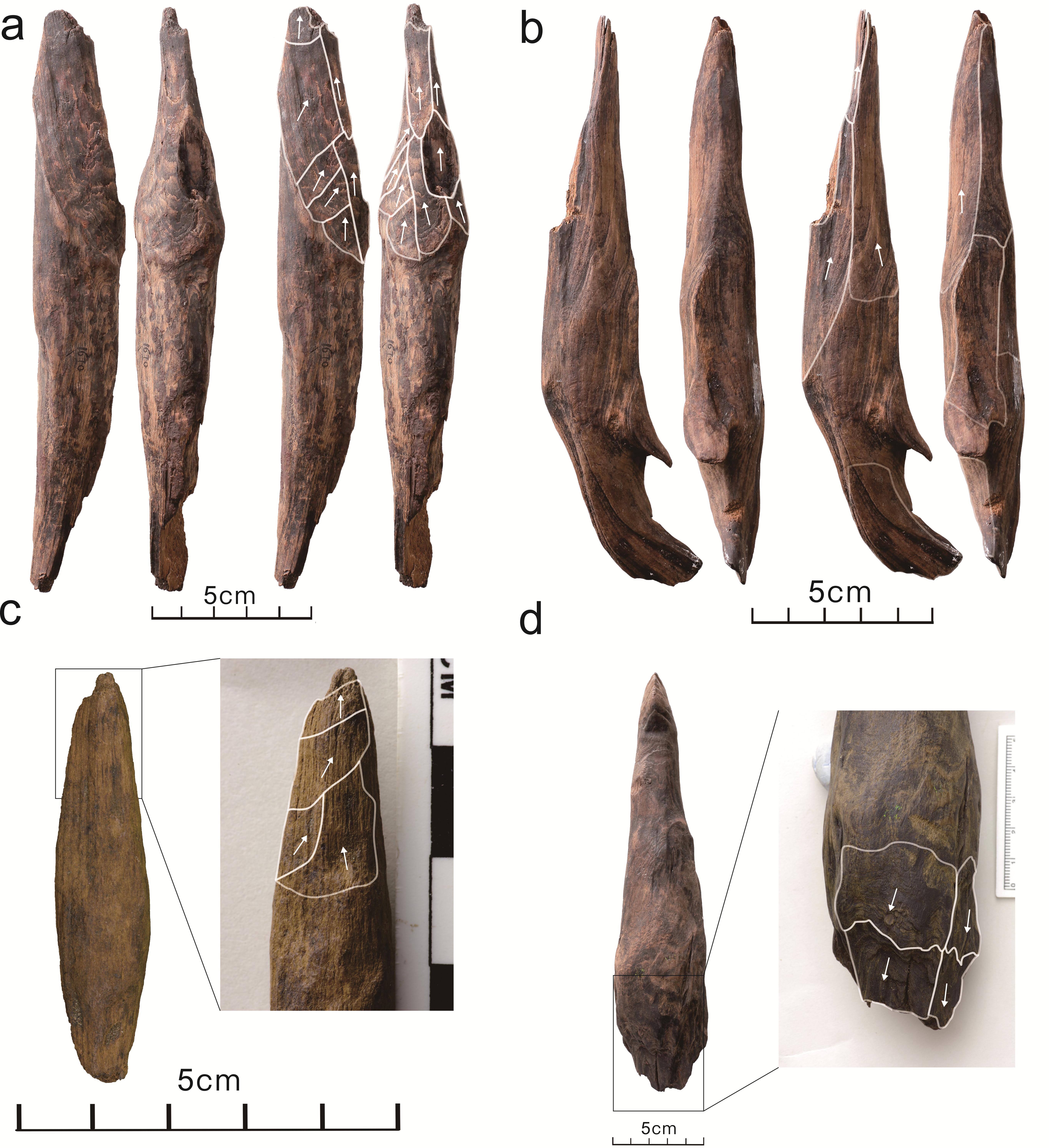 考古人员在云南省江川县甘棠箐遗址发掘出土了35件保存完好的、年代约为距今30万年的木器,通过痕迹分析、残留物分析和实验模拟等发现,其中19件标本保留明显的因削枝修型和削尖加工使用而留下的削刮痕,17件尖端表面存在因使用而产生的磨光条痕和断裂破损迹象。这些痕迹出现在特定部位并具有方向性,是确凿的人类加工与使用的证据。由于多数木器的尖端保留土壤残留物,从其上提取到一些植物的淀粉粒,证明这些木器的主要功能是挖掘可食性的地下植物根茎。
