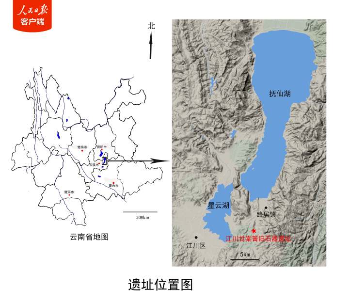 甘棠箐遗址位于云南省江川县,坐落于抚仙湖南约5公里的一处自南向北流淌的小溪西侧的坡地上,海拔高度1836 米。该遗址发现于1984年,1989年做过首次考古发掘,出土大量石制品和动物化石及木质材料。2014-2015 和2018–2019两个野外考古季,对该遗址再次发掘,揭露面积64 m2,挖掘深度3.5-7 米,出土丰富的石制品、动物化石、木质材料、植物种子和用火遗迹。本次发表的材料全部来自这两次的考古发掘。