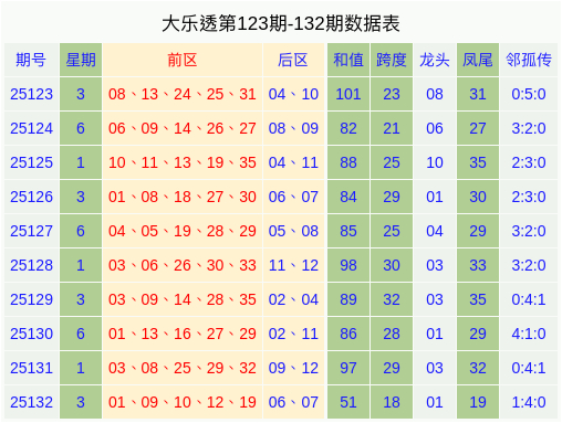 上期回顾:大乐透25132期开出奖号:前区01、09、10、12、19,后区 06、07。